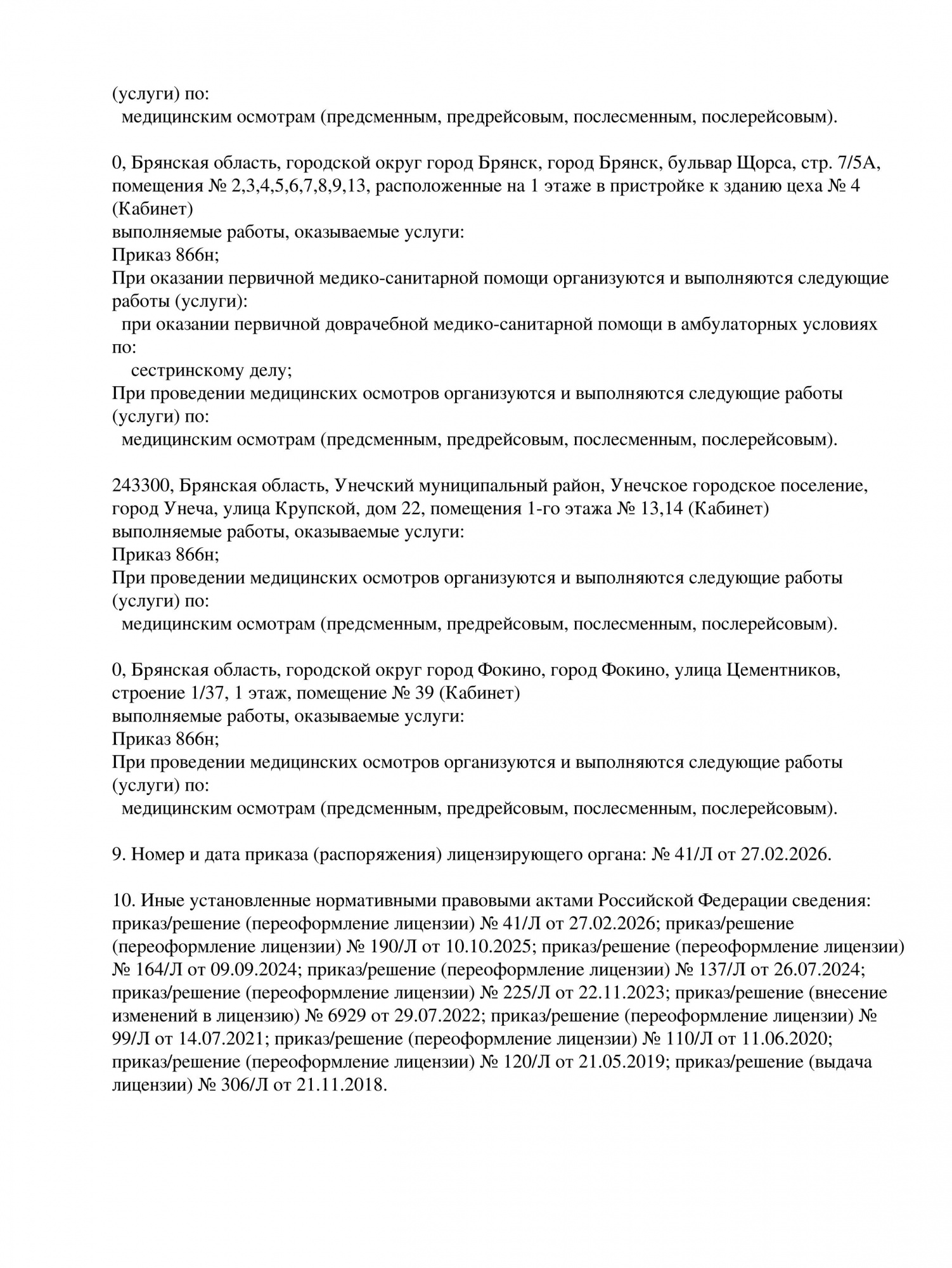 Выписка из реестра лицензий МПК 3стр Клинцы