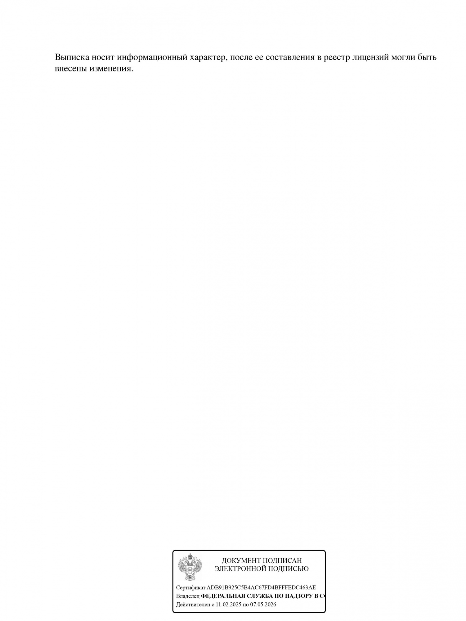 Выписка из реестра лицензий МПК 1стр Клинцы